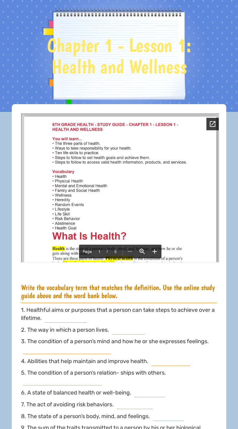 Explore our themed health unit to teach a variety of health topics while building literacy skills.Chapter 1 your total health chapter 1 worksheet packet chapter 1 review health triangle assignment.Illustrations blackline masters.