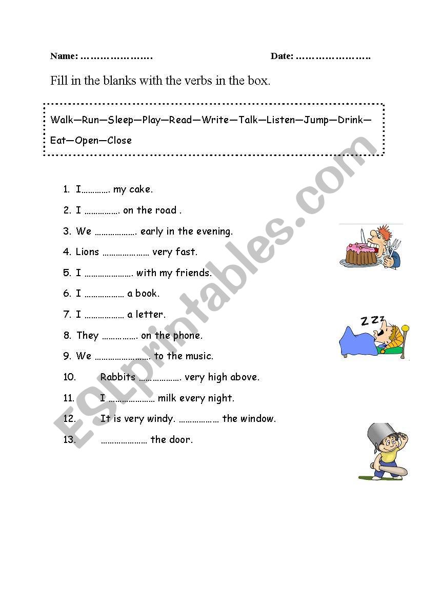Action verb worksheets all kids network action verb worksheets help kids learn what action verbs are and how to recognize them in sentences.What can animals do.A collection of english esl worksheets for home learning online practice distance learning and english classes to teach about action verbs action verbs.