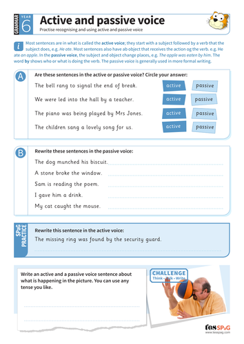 Active passive voice worksheet.The sentence that uses the active voice is stronger uses fewer words and clearly shows who performs the action.The printable worksheet includes a space for students to write one of their own active and passive sentences.Active and passive voice worksheet for level id.