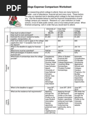 The sheet can easily compare the data from five colleges or even more.Enrollment physical size of campus.What is a college comparison worksheet.