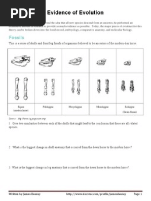 The lesson begins with an overview of the fossil formation process then covers the evolution of land dwelling animals from fish.Evidence for evolution worksheet directions.The first evidence of evolution students will identify involves changes in skull and foot fossils of different ancestors of the modern horse.