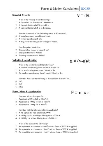 Forces And Motion Worksheet