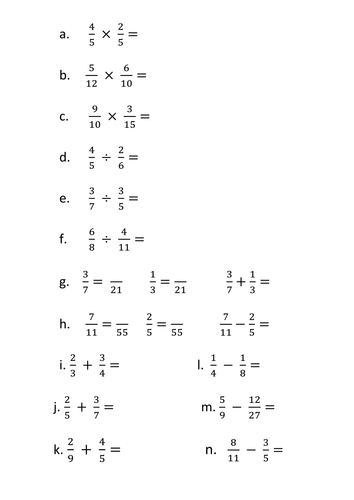 You may select between three different degrees of difficulty and randomize or keep in order the operations for the problems.Fraction operations fraction operations printable worksheet.Fractions four operations worksheet teaching resources a worksheet containing a section on adding subtracting multiplying and dividing fractions.