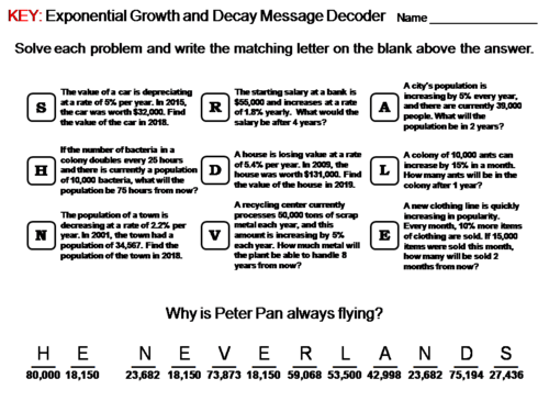 Growth and decay worksheet.Exponential growth and decay word problem worksheets.Once you find your worksheet s you can either click on the pop out icon or download button to print or download your desired worksheet s.The student will be given word problems that involve writing and solving exponential growth or decay functions.