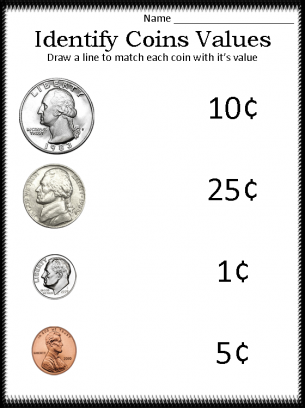 These worksheets are pdf files.Names and values of coins.This is purely a memorization process but it can be confusing for students at times because of the conflicting visual cues that some coins imply.