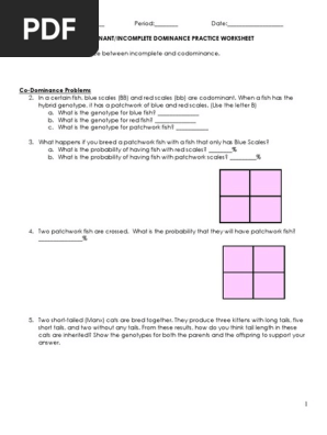 Provide a punnett square to support your answers where indicated.Incomplete and codominance worksheet mrs.Explain the difference between incomplete and codominance.