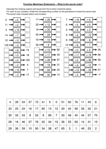 Worksheets go from simple finding inputs and outputs to finding missing operations and constructing function machines for worded questions.Worksheets cover basic operations decimals measurement.All to often students are given the operation and then told to compute.