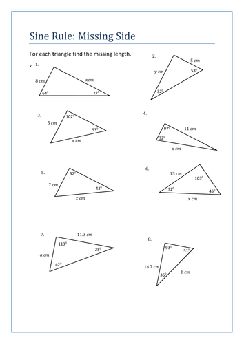 Solve for all missing sides and angles in each triangle.Use proper variables a.How and when to use formula examples.