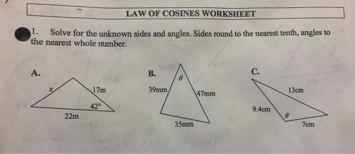 Law Of Cosines Worksheet