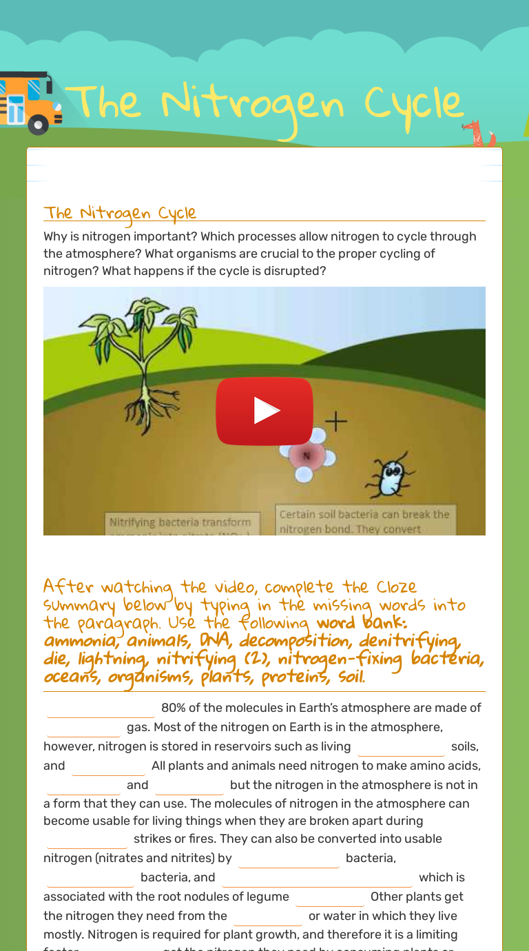 Nitrogen Cycle Worksheet