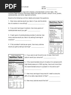 Nutrition Label Worksheet Answers
