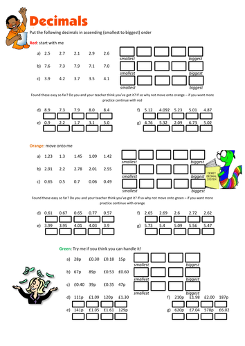 Free math worksheets from k5 learning.The student will be given a list of decimal numbers and be asked to order them in ascending or descending order.3rd and 4th grades.