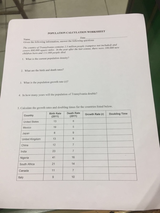 Population density people sq.Student worksheet is included as a convenience.Answers to student worksheet country birth rate 2017 death rate 2017 annual natural increase doubling or halving time in years.