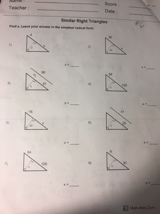 Leave your answer in.Similar right triangles worksheets teaching resources tpt this activity sheet containing 15 questions has the students subdividing aright triangle into three similar right triangles by adding the altitude from thevertex of the right angle.Then you can use the aa similarity postulate.
