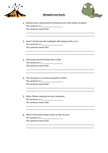 Add to my workbooks 22 download file pdf embed in my website or blog add to google classroom add to microsoft teams share through whatsapp.Similes and metaphors worksheet teaching resources similes and metaphors worksheet.All worksheets are free to duplicate for home or classroom use.